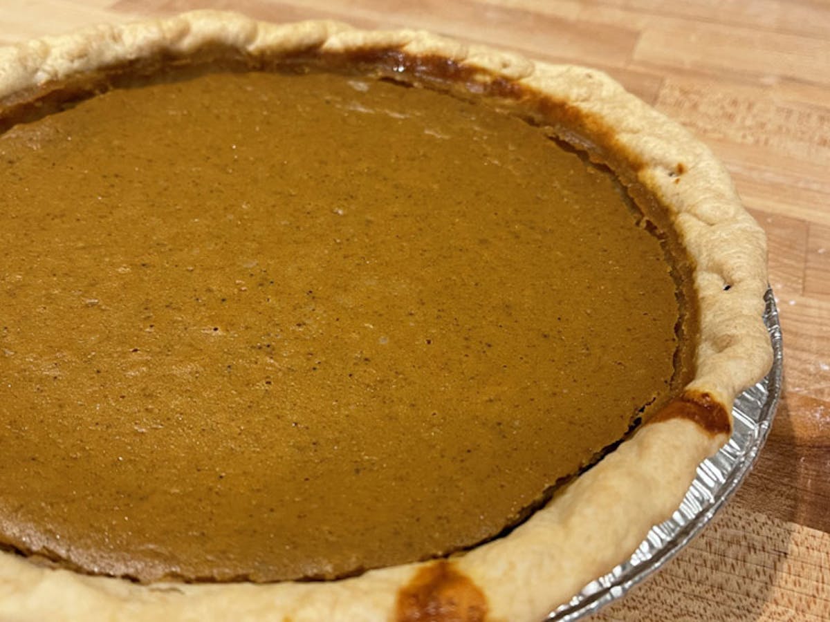 It’s hard to imagine an American Thanksgiving without the orange-crusted custard pie on the table. Pumpkin pie is one of our favorite ways to celebrate the beloved fall gourd. Our pumpkin pie crust is made by hand with whole wheat pastry flour, then hand-crimped at the edges. Our special recipe is full of pumpkin, ginger, nutmeg, cinnamon, and sweetened with maple syrup for maximum fall flavor. It’s pretty darn delicious, if we do say so ourselves.
